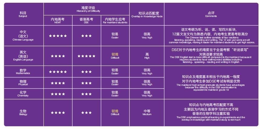 内地高考&DSE香港高考部分学科对比