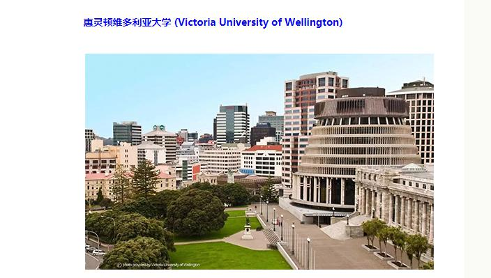 大学介绍:建成时间:1899 年学校性质:公立坐落位置:新西兰首都惠灵顿学生人数:约 21500 名,其中国际学生约 3000 名校区:4 个(Kelburn、Pipitea、Te Aro、 Karori)大学优势:• 在很多研究领域享誉国内外,有着很多从事高级教研活动的专门机构;• 同首都地区的政府机构及研究院所保持着密切的合作关系;• 选课灵活,课程的内容根据社会和学生的需要时时更新;• 鼓励学生发展独立研究能力,致力于培养能独立作业、有创新意识的高级人才;• 为在校学生提供大量的"导师辅导机会",学生可以在办公时间或和导师,获得个别的学业和心理。优势专业商科,工程学,音乐教育,地震研究和建筑设计研究等
