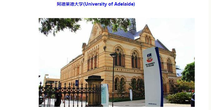 阿德莱德大学位于南澳大利亚州的阿德莱德市,建校于 1874 年,是澳大利亚最古老和最著名的 大学之一。阿德莱德大学培养的毕业生有 3 人荣获诺贝尔奖。阿德莱德的生活费用比澳大利亚其它大城市低。优势专业:商科;工程学;生物学(尤其是农业,医药,分子生物学/生物科技);自然科学(尤 其是物理,地理和地球物理学);信息技术和电信;环境科学和管理;社会科学(尤其是亚洲 学习,国际经济学和人类地理学)等。入学要求:本科:6.5 分,单项不低于 6, 个别专业 7-7.5 分