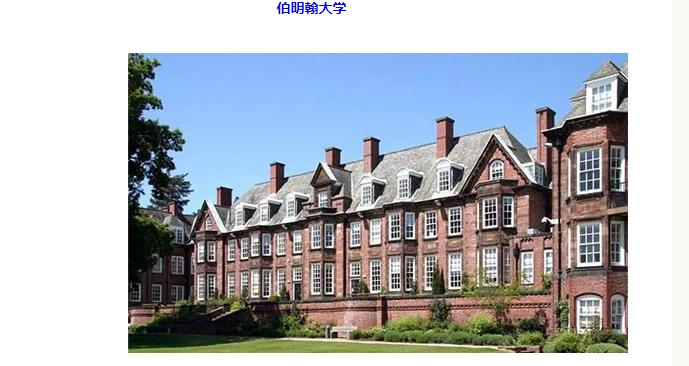 大学介绍:伯明翰大学位于英格兰的伯明翰市,是英国历史上著名的“红砖”大学之一。目前是罗素大学集团成员之一,同时也是是国际大学组织Universitas 21的创始会员,并担任该组织秘书长之职。 伯明翰大学、是英国最著名的大学之一,是英国、校园规模的老牌名校,伯明翰大学优异的教学和科研在世界各地都享有极高的声誉。优势专业:工商管理、化学、经济学、教育、土木工程、电机和电子工程等。入学要求:雅思要求:6.0(单项不低于5.5)-6.5(单项不低于6.0)