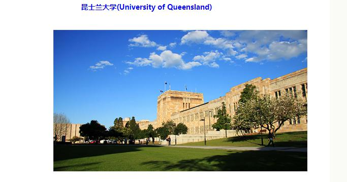 始建于 1910 年,世界大学,也是昆士兰州的所综合型大学,澳大利亚最有声望的 大学之一。2017-2018 年 QS 世界大学排名澳洲第 4,世界第 47 位,亚太地区排名前 20。昆大是被誉为“澳大 利亚常青藤名校”的 Group of Eight 联盟(澳洲八大名校联盟)成员之一,同时也是世界 21 大学联盟 (UNIVERSITAS 21)成员之一,昆士兰大学在产业资助研究和竞争基金方面方面是全澳大利亚的三所大学之一,毕业生平均就业率 73%,高于全国的68.8%的平均就业率。优势专业:商业,经济,法律,建筑学,生物科学与工程,航空航天科技,牙科,自然资源, 矿产,语言学,艺术,管理学等。入学要求:本科 6.5 分(各项不低于 6.0)个别专业 7-7.5 分;