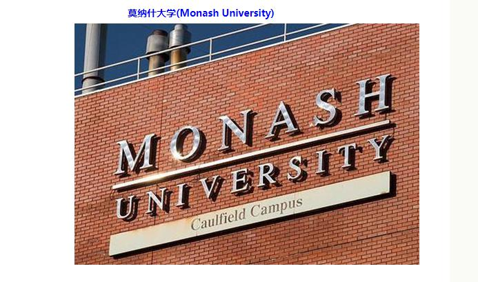 莫纳什大学位于维多利亚的墨尔本市,澳洲八大院校之一,2017-2018 年 QS 世界大学排名澳洲第 6,世界第 60 位,是澳大利亚规模的国立大学之一,其综合实力在各大学中名列前茅,被评为澳大利亚 五星级大学。是世界密集研究型大学,超过 25%的在读学生是研究生。优势专业:语言学,传媒和媒介研究,化学工程,地理学,土木工程,社会科学,商业与经济学,信息技术,物理,艺术与设计,法律,医学,教育,工程学等。入学要求:本科:6.5 分(各项不低于 6.0) 个别专业 7-7.5 分;