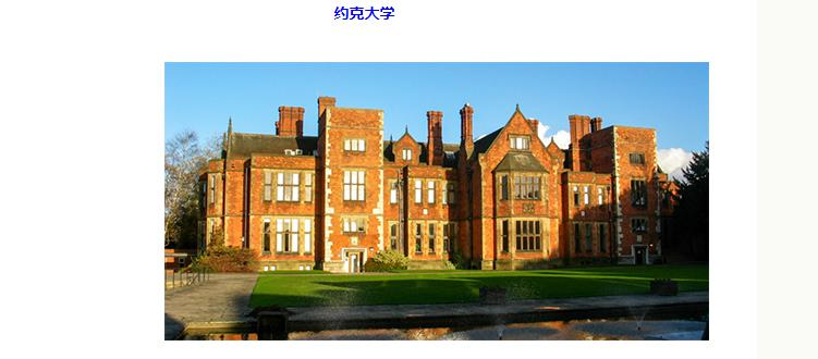 大学介绍:约克大学成立于1963年,从最初的200名学生发展到今天的近10,000名学生。大学下设7所学院,有30多个学系和研究中心,在短时间内发展成为全英国最成功、最受欢迎的综合性大学之一,其教学质量与剑桥大学并列教学联盟的首位。在保持其高教学质量的传统之余,学校亦对越来越多的科目进行了改革,使之更加灵活而实用,旅英著名作家张戎和英国当代诗坛杰出女诗人海伦丹默均毕业于该校。约克大学位于历史名城约克郡的边缘,以其风景如画的校园而著称。校园内的教学楼及学院之间分布紧密,步行极其方便。交通便利,学校位于伦敦和爱丁堡之间,乘火车到达伦敦仅需两个小时,离爱丁堡仅两个半小时车程,距离最近的利兹机场仅15公里。大学优势:在英国的大学中名列第8在世界大学中名列第74位在科研方面领先国际给予学生的支持所在的约克市景色美丽,历史悠久乘火车到伦敦只大约需要两小时提供高质量的教育,闻名国际有180多个学生社团位于公园绿地上的校园安全美丽入学要求:语言要求:本科生:IELTS 6.5(且单项成绩不低于6)