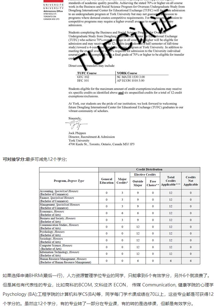 招生对象:应往届高中毕业生。阿尔伯塔大学录取要求:1. 学术要求:Ø 国内高中毕业。高中三年均分Ø 商科87%以上;工科85%以上;社科83%以上Ø 会考成绩B以上,相关主科基本为A;Ø 高考成绩达总分60%左右。2. 预科成绩要求: 80%以上约克大学录取要求:1. 学术要求:Ø 国内高中毕业,高中三年均分75%以上;Ø 会考成绩(C或者C以上);2. 预科成绩要求: 70%以上3. 本科语言要求:大多数本科专业直录要求:雅思6.5分或以上;或托福83分或以上;阿尔伯塔双录:无最低语言要求。分以下三种1. 无语言要求的双录项目2. CCEL语言强化班(雅思5.5,托福70)3.学术英语课程EAP—阿尔伯塔大学直通车录取(为期18周)约克双录:无最低语言要求。分以下三种1. 无语言要求的双录项目2. 8个月桥梁项目(雅思5.0,写作5)3. 直通车项目(雅思5.5-读4个月;雅思6.0,读2个月)申请材料:1. 高中三年的官方成绩单(由所就读高中出具,中英文原件密封件或公证件);2. 高中毕业证(由市级或省级教育机构出具);3. 高中毕业考试成绩(又被称为会考,或高中学业水平测试等);4. TUFC预科成绩和结业证。注:申请某些具体课程的学生会被要求提供一些额外的申请材料。