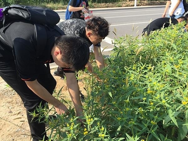 活动中全体学生们积极性都很高,每个人都使出了浑身解数与外来入侵者黄顶菊作斗争。有的同学被虫子叮得浑身是包,有的同学被杂草划得满手是伤,但是没有一个同学喊苦喊累,大家都想要尽自己的努力为环境做出一点贡献。最后,在大家的共同努力下,同学们除掉了衡水湖边相当大的一片黄顶菊,为本地生物提供了生长条件。