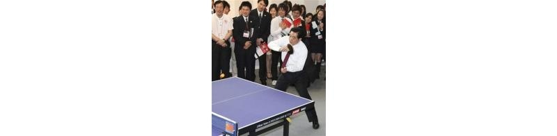 2008年5月8日,胡锦涛主席访问早稻田大学,发表重要演讲,并与日本乒乓球国手福原爱进行了一场乒乓球友谊赛。