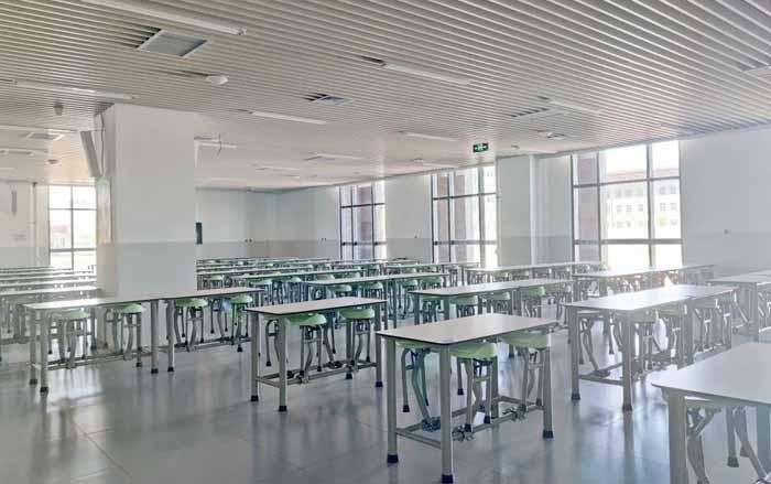 食堂干净整洁、明亮卫生,可同时容纳数千人就餐。